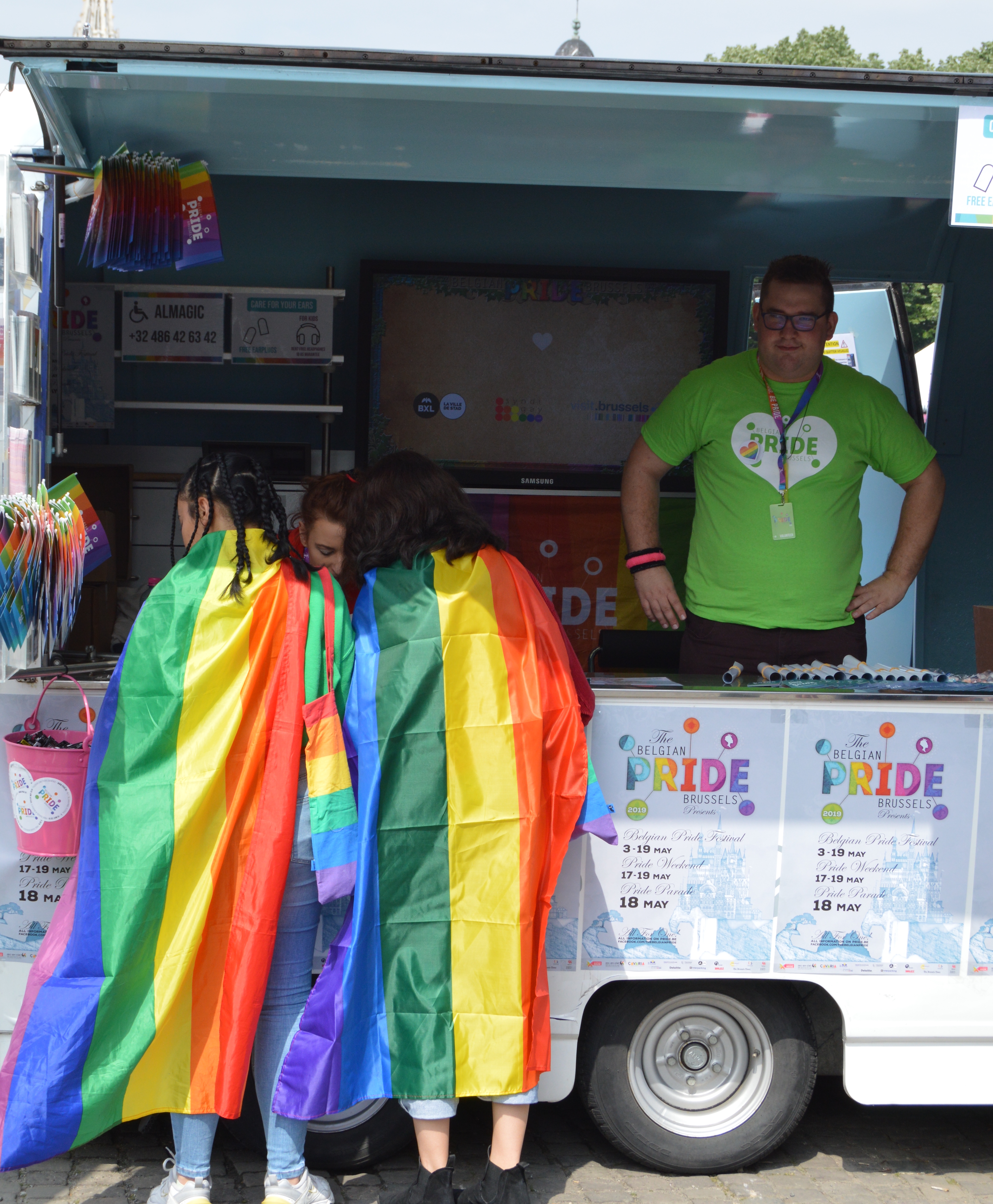 Chaque année, la Belgian Pride tient un stand d’information dans le Pride Village, animé par des bénévoles, les Helping Hands. Les visiteurs peuvent y trouver des informations sur l’événement et consulter des brochures et des dépliants. Si vous avez des questions, c’est ici que vous devez vous rendre !